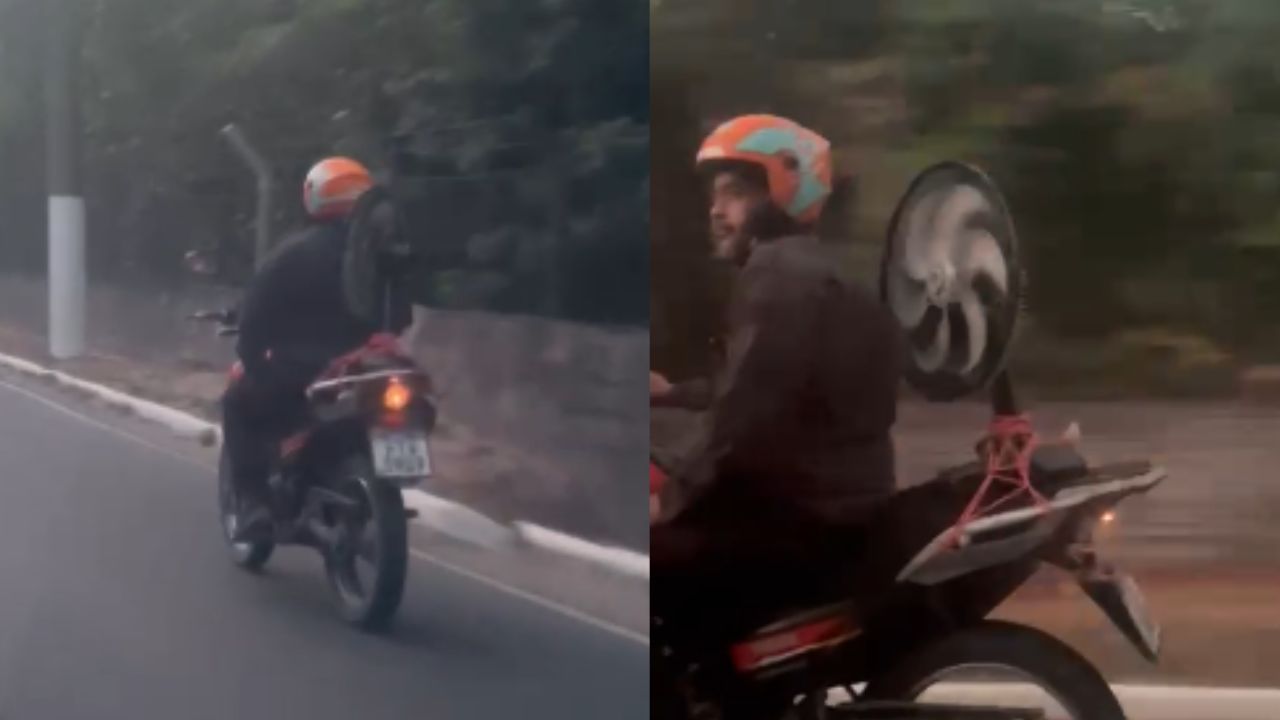 Um vídeo que está viralizando nas redes sociais mostra um motoqueiro que teve a ‘brilhante’ ideia de colocar um ventilador na garupa enquanto pilotava pelas ruas da capital amazonense.