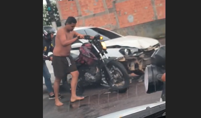 Testemunhas relataram que a motocicleta possuía escapamento alterado e circulava em velocidade acima do permitido. Um vídeo registrado no local mostra o momento da colisão. Os dois jovens na moto não usavam capacete e sofreram ferimentos.