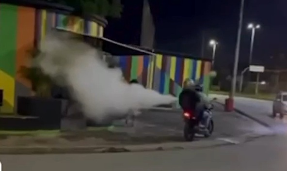 BRASIL – Motoqueiros ainda não identificados foram pegos jogando o conteúdo de extintores em travestis na cidade de Contagem, na Região Metropolitana de Belo Horizonte.