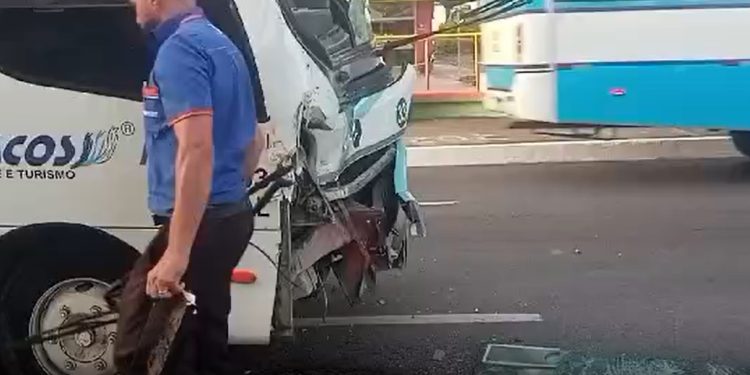 O motora do micro teria dormido e acertado a traseira do transporte pública. O Samu foi ao local e socorreu as vítimas.