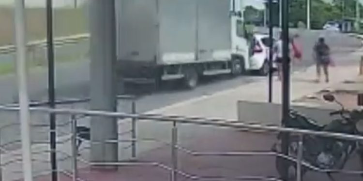 MANAUS – Ninguém conseguiu explicar ainda o vídeo do motorista do caminhão-baú que atingiu em cheio um Mobi de um motorista de aplicativo na avenida do Turismo, bairro Tarumã, zona Oeste de Manaus. As imagens caíram nas redes sociais nesta quarta-feira (15), e mostram a violência do impacto.