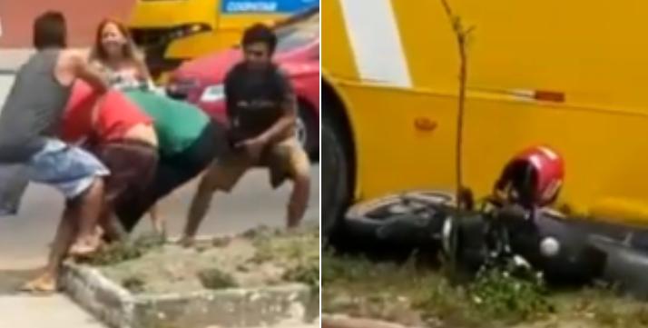 MANAUS-AM| Na manhã desta terça-feira (15), um motorista de transporte público acabou provocando um acidente quase fatal e ainda agrediu a vítima que é um idoso que estava em um motocicleta. O caso ocorreu avenida Grande Circular, No Mutirão, zona Norte de Manaus. Pessoas que passavam pelo local registraram a confusão.