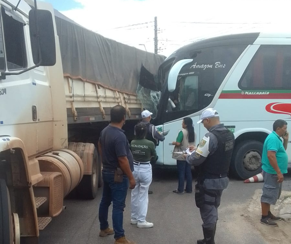 MANAUS (AM) – Um acidente de trânsito entre uma carreta e um ônibus do transporte intermunicipal deixou o motorista gravemente ferido após o trabalhador ficar retido as ferragens.
