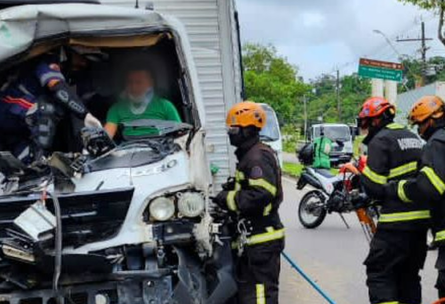 MANAUS – O Corpo de Bombeiros Militar do Amazonas (CBMAM) realizou, na manhã desta segunda-feira (25/03), o trabalho de desencarceramento de duas vítimas presas às ferragens de um caminhão baú, após um acidente de trânsito na avenida do Futuro, no bairro Tarumã, zona oeste da capital. Cinco viaturas atuaram no local da ocorrência.