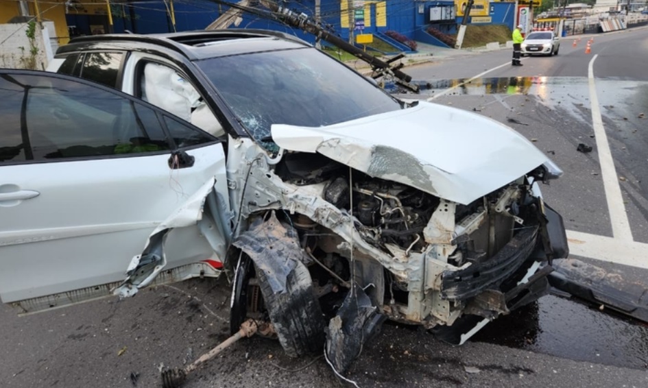 MANAUS – O domingo (28) começou com um acidente na Avenida do Turismo, na Ponta Negra, Zona Oeste de Manaus, onde um carro derrubou poste e ficou atravessado na via.