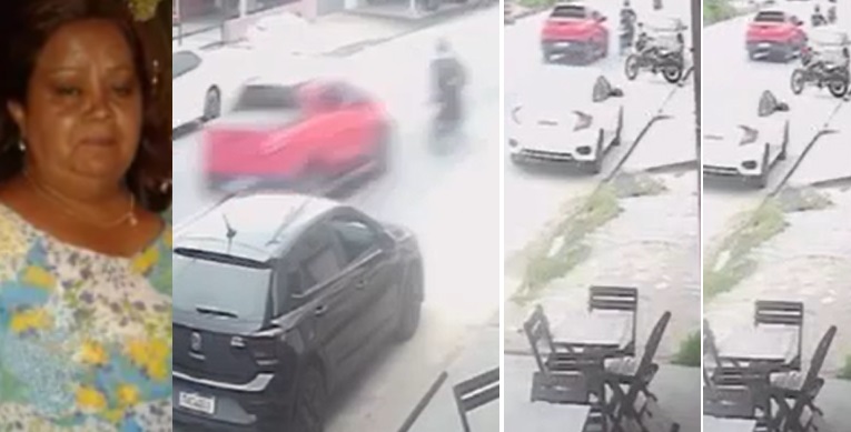 Um vídeo mostra o carro vermelho perseguindo a moto, e o momento do acidente que tirou a vida de Vera. Ela tinha ido deixar o neto para cortar o cabelo.