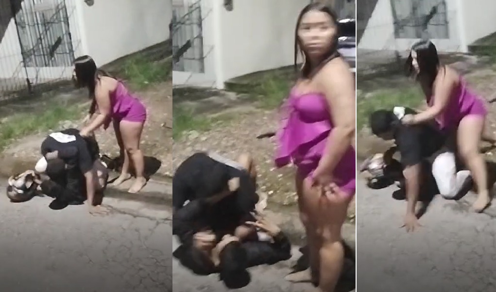 BRASIL – Uma mulher de roupas curtas foi disputada no braço por dois mototaxistas apaixonados, em Belém do Pará, enquanto os colegas filmavam e ela ficava sem saber como apartar a porrada.