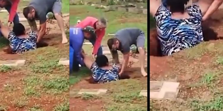 🚨BRASIL: Chão do cemitério do Distrito Federal cede e mulher cai dentro do buraco. Familiares e funcionários do local ajudaram a moça a sair da cratera. pic.twitter.com/ZVvziFQuvq