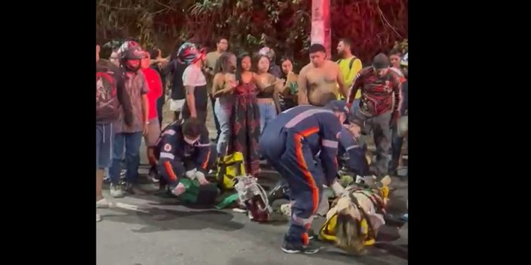 MANAUS – Uma mulher não identificada foi jogada da garupa de uma moto na noite de segunda-feira (18), após um grave acidente na Rodrigo Otávio, no Japiim, zona sul de Manaus.