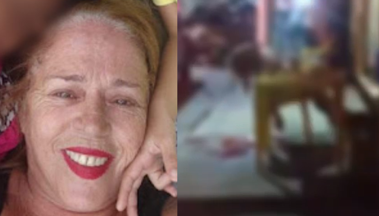 Cida morreu na hora e não teve chances de se defender. Um vídeo mostra a vítima caída para trás, em cima da cadeira de plástico.