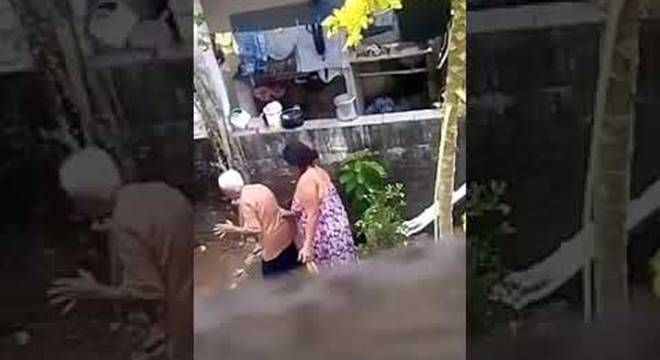 No registro, a mulher aparece obrigando a mãe a varre o quintal. Em determinado momento, ela a agride com o pedaço de madeira e tira a vassoura das mãos da idosa.