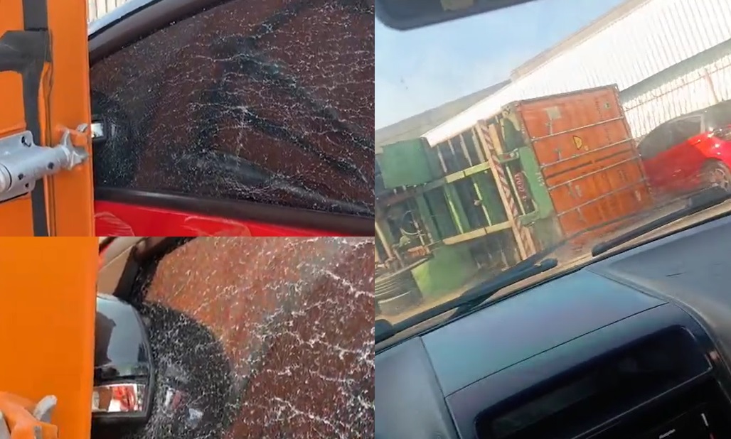 A imagem do contêiner ao lado do carro mostra a sorte que a mulher teve. Em Manaus, vários acidente fatais com esse tipo de veículo ocorreram nos últimos anos.