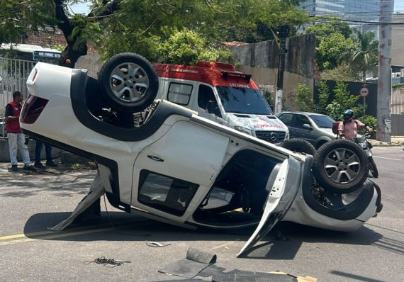 MANAUS (AM) – Um acidente na manhã desta sexta-feira (6) na avenida Belo Horizonte, quase chegando na Umberto Calderaro, deixou motoristas e moradores assustados. Uma picape capotou.