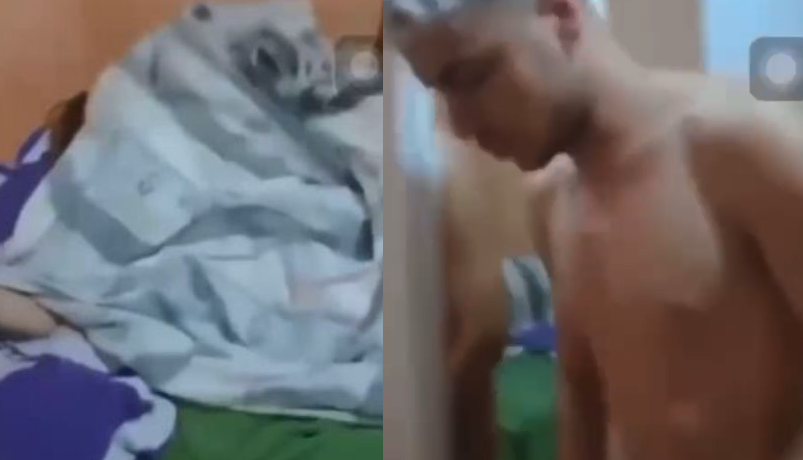 Nas imagens, ela mostra o marido levantando da cama só de cueca. A “amiga” tenta se esconder debaixo do cobertor e não esboça muita reação.