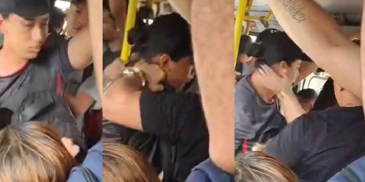 MANAUS – Um homem não identificado apanhou dento do 010 nesta quinta-feira (18), acusado de assédio por uma mulher que estava chorando. “Ele estava esfregando o negócio dele em mim”, disse a passageira.