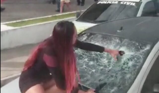 Manaus- AM| Está viralizando pelas redes sociais, o vídeo de uma mulher que está sentada no capô de um carro em movimento e está quebrando com uma pedra o vidro do automóvel com uma pessoa dentro. Postado nesta terça- feira (17), toda a situação ocorreu na frente do 14.º Distrito Integrado de Polícia (DIP), que fica na Av. Autaz Mirim, no bairro Tancredo Neves.