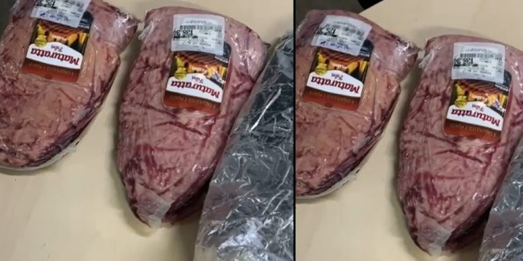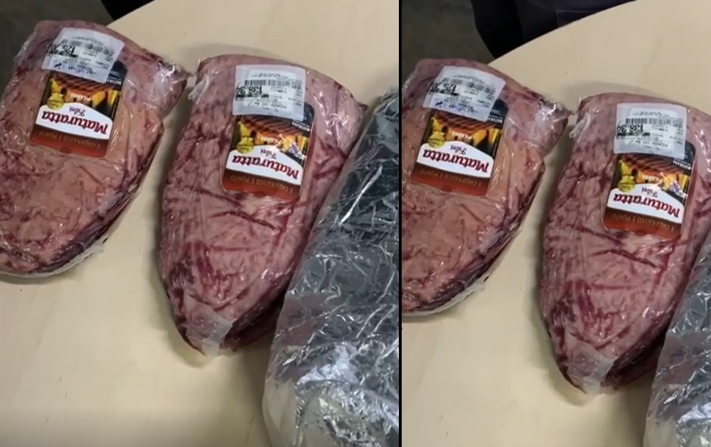 A mulher tinha duas peças de picanha escondidas em papel alumínio e acabou presa..