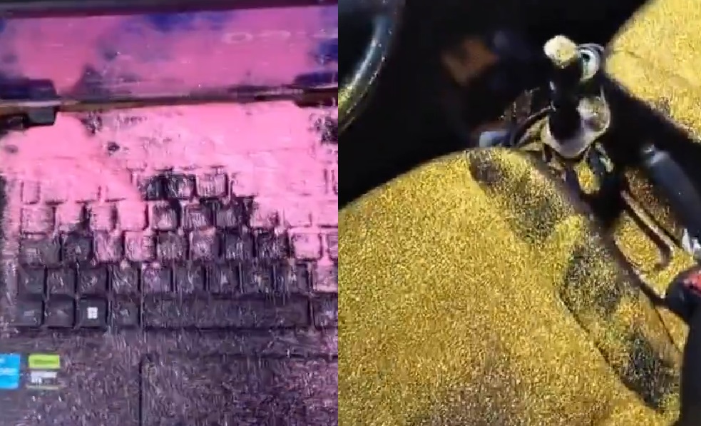 BRASIL – Uma mulher chifrada pelo namorado resolveu se vingar dele jogando glitter em todo o carro e em todo o apartamento dele, incluindo móveis, roupas e até o notebook.