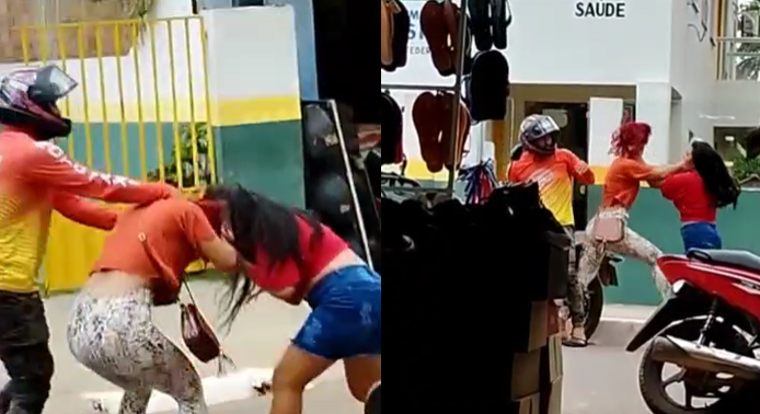 Após separarem as brigonas, a ruiva volta a ir embora com o homem. Uma mulher que filma diz que as duas estavam brigando pelo “bonitão do mototaxista”.