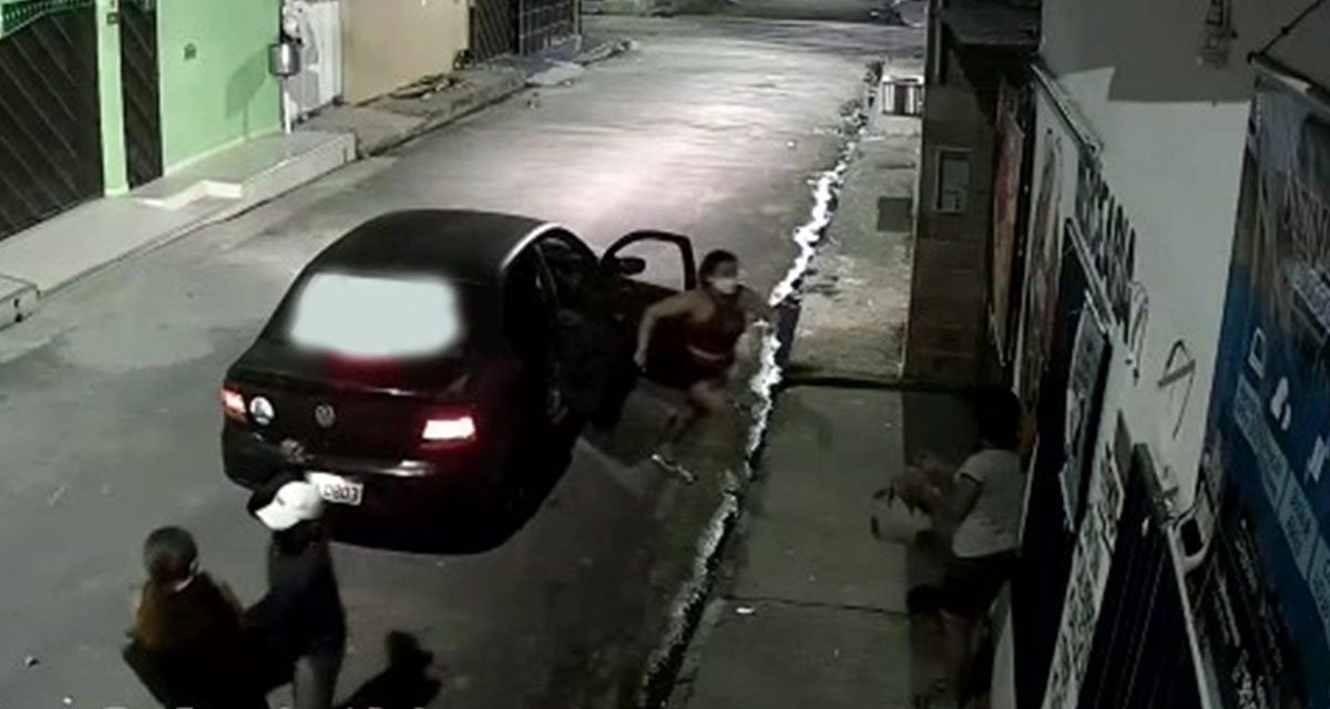 Nas imagens é possível ver o momento em que as vítimas andam tranquilamente na rua, quando um veículo modelo Volkswagen Voyage, de cor preta para perto delas e o casal sai do carro. Uma das vítimas até tenta reagir ao assalto, mas a assaltante ajuda o comparsa e eles conseguem tomar a bolsa da mulher. Veja;