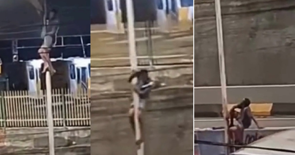 MANAUS – Um homem não identificado foi flagrado subindo no poste nesta terça-feira (7), para furtar fios elétricos e vender no mercado negro de Manaus.