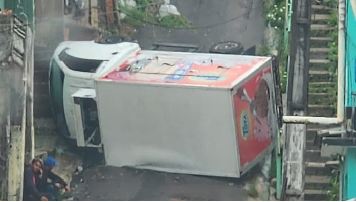 MANAUS (AM) – Um vídeo mostra que um caminhão tentou subir a ladeira da rua Olinda, no bairro Redenção, Zona Centro-Oeste de Manaus, e acabou capotando nesta sexta-feira (26).