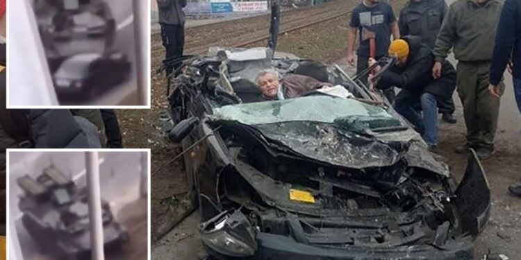 UCRÂNIA | Um tanque militar de guerra passou por cima de um carro com um civil, nesta sexta-feira(25), em uma rua de Kiev, na Ucrânia, onde acontece o ataque da Rússia. A ação foi intencional e de ataque ao condutor.