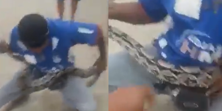 Conforme as imagens, o animal já está recuperado e um grupo de pessoas se diverte enquanto um homem brinca com a cobra tentando causar medo em todos. Algumas pessoas aproveitam para tocá-la.