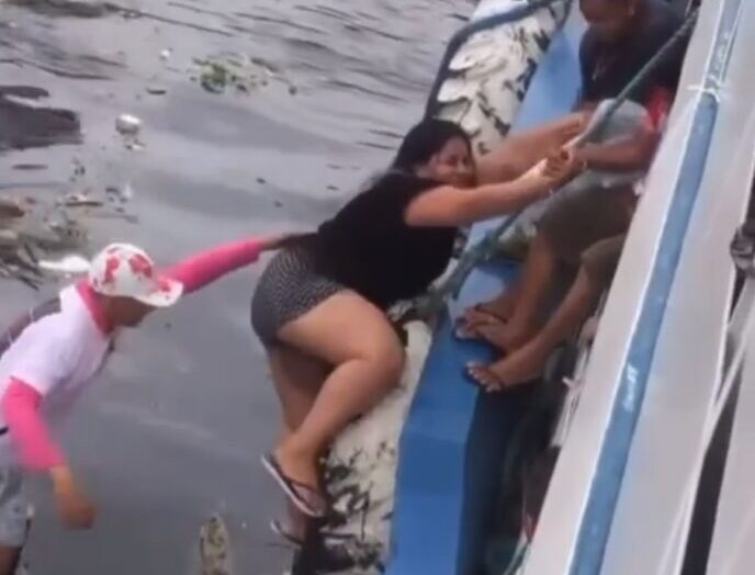 MANAUS (AM) – Um vídeo flagrou o momento em que uma jovem “trepou” no barco e quase caiu nas águas do rio, no Porto de Manaus. Ela não poderia perder a viagem que ia até Parintins, para o 55º Festival Folclórico que será realizado nos dias 24, 25 e 26 de junho, neste final de semana.