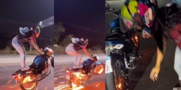 Vídeo: Novinha polemiza ao dar ‘grau’ em moto com fogo nas rodas em avenida de Manaus