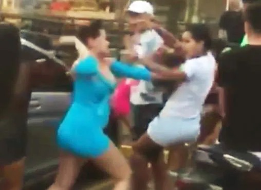 Até que uma das garotas paquerou um o ex-namorado de uma outra garota, que também estava no local.