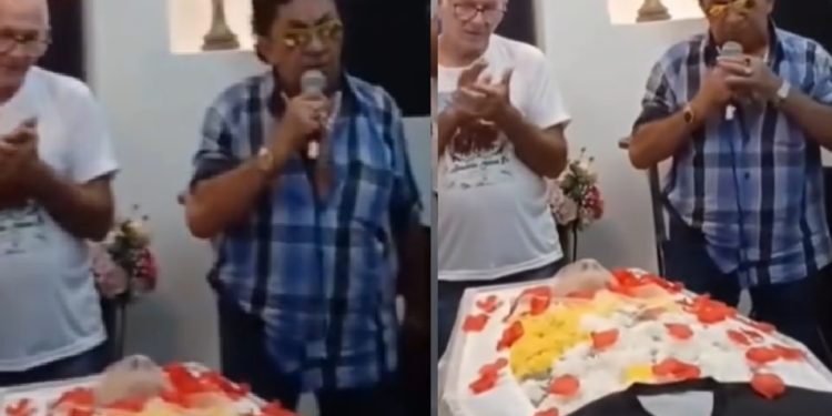 O homem foi identificado como Benidito, e além da apresentação, Nunes fez questão de acariciar o fã no caixão, ao lado de parentes e amigos. “Importante é fazer a vontade do falecido”, comentou uma internauta.