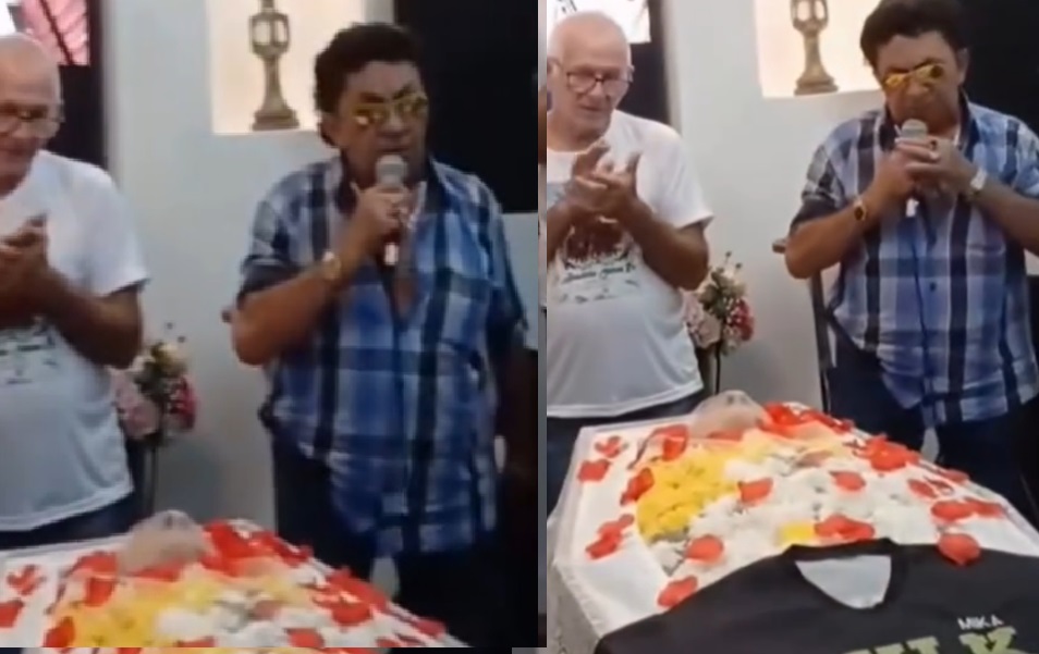 O homem foi identificado como Benidito, e além da apresentação, Nunes fez questão de acariciar o fã no caixão, ao lado de parentes e amigos. “Importante é fazer a vontade do falecido”, comentou uma internauta.