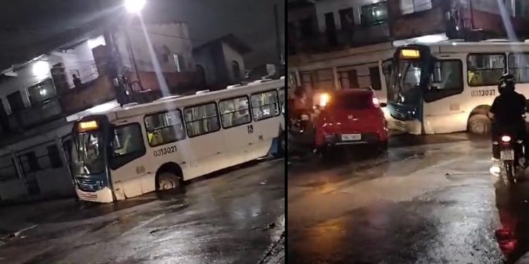 MANAUS – Uma moradora filmou o momento em que um ônibus ficou atolado na noite desta quarta-feira (19), na rua Professor Miguel Duarte, no bairro Monte das Oliveiras, na zona norte de Manaus, região que ficou sem água, segundo ela, problemas causadas pela concessionária Águas de Manaus.