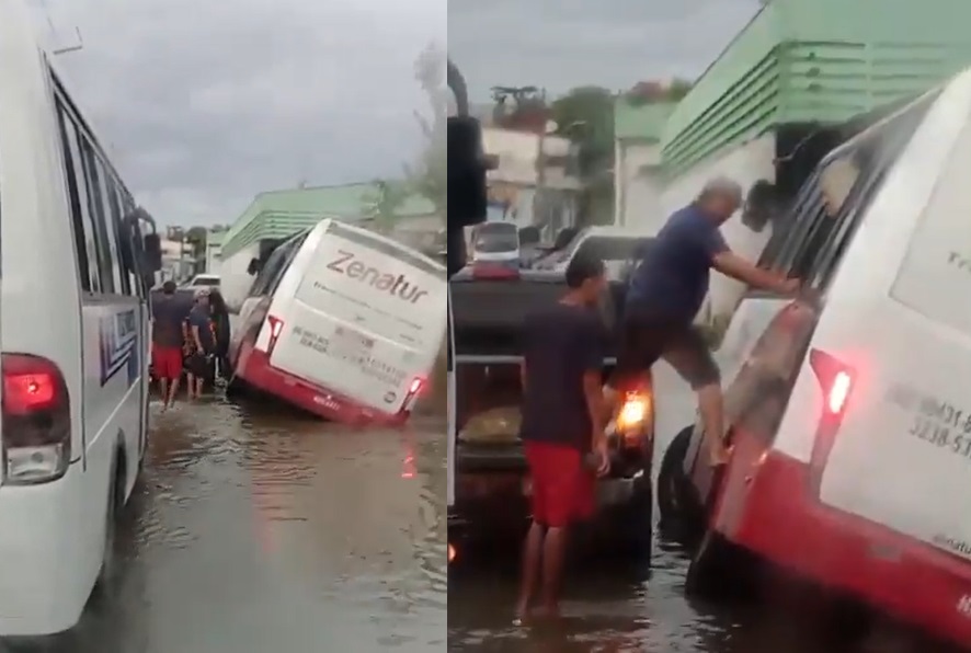 Os passageiros tiveram de sair pela janela, numa cena arriscada e trágica pela situação em que a cidade se encontra. Era por volta das 6h quando o veículo tombou.