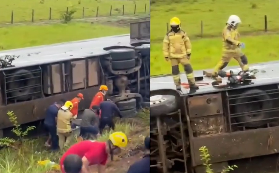 MANAUS – Um acidente grave mobilizou bombeiros, policiais e voluntários nesta quarta-feira (8), na rodovia BR-174. Um ônibus que saiu de Manaus (AM) para Boa Vista (RR) perdeu o controle e tombou.