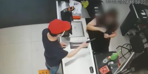 Nas imagens, é possível ver Eliseu entrando na loja e se deslocando até o caixa. Após se passar por cliente, ele tirou a arma da cintura e anunciou o assalto, ordenando que ela entregasse o dinheiro do caixa.