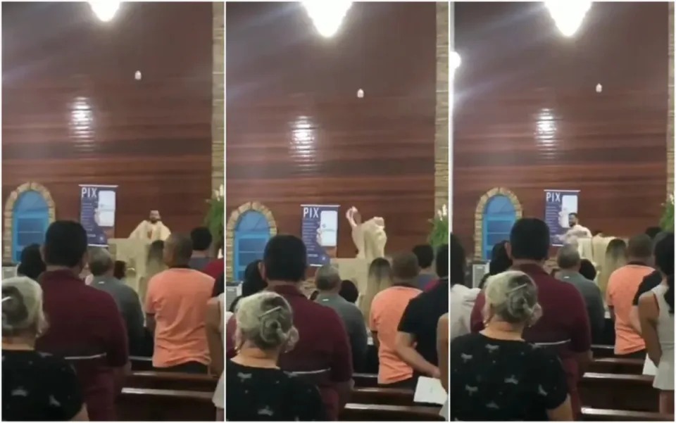 Imagens gravadas dentro da igreja mostram quando os dois discutem e o sacerdote diz: