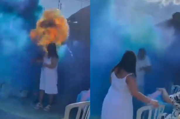 A fumaça colorida ia indicar se era menino ou menina e aconteceu com a família de Aquiles, quarto filho de Dayane e Carlos Henrique. Assim que usaram o artefato, uma “bola de fogo” se formou e o homem se feriu.
