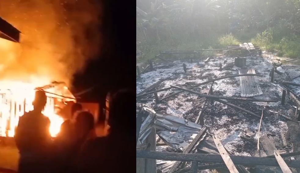 AMAZONAS– Um incêndio destruiu a casa de uma família s na madrugada desta quarta-feira (12), em Carauari, no interior do Amazonas. Uma lamparina teria caído sobre a cortina do imóvel.