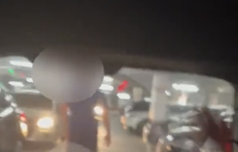 Um vídeo mostra o momento em que a mulher está dentro do veículo e começa a ser ameaçada. O casal chega a bater no vidro e tentar abrir a porta.