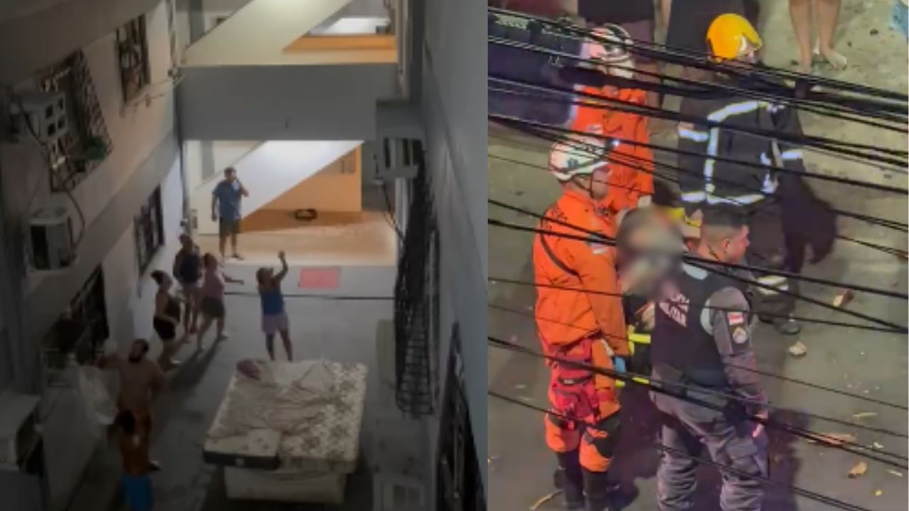 De acordo com testemunhas, duas mulheres ficaram presas dentro do imóvel tomado pelo fogo e pela fumaça. Sem alternativas, ambas se arriscaram pulando do terceiro andar, sendo amparadas por colchões e materiais improvisados pelos próprios moradores, que formaram uma rede de salvamento. A ação rápida dos vizinhos foi fundamental para evitar uma tragédia maior.