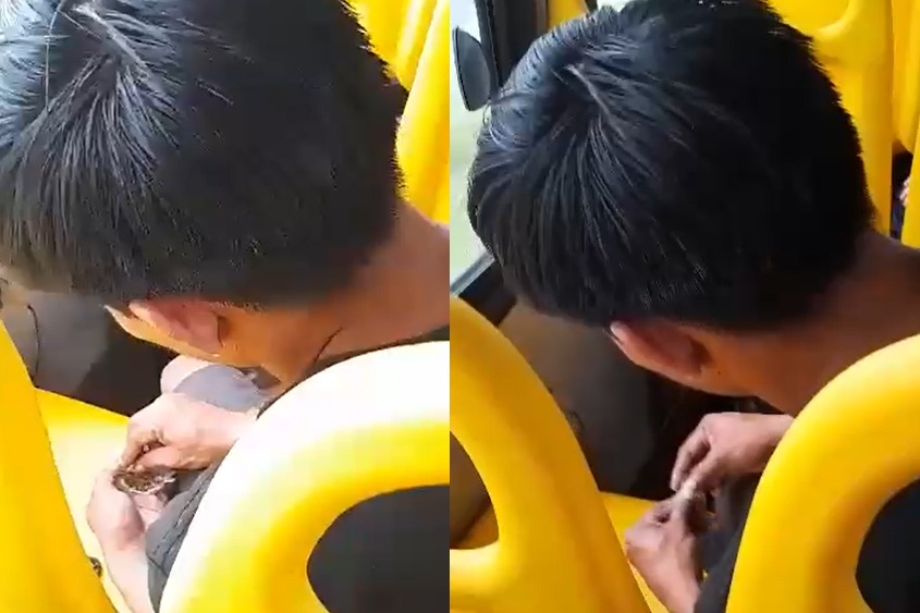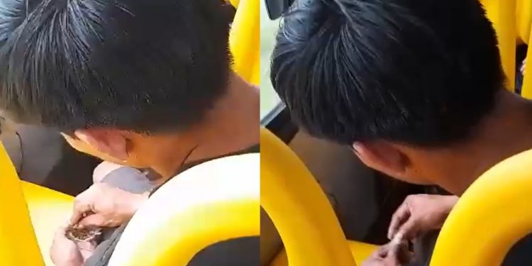 MANAUS – Uma mulher filmou um viciado enrolando um baseado dentro do busão em Manaus e jogou o vídeo nas redes sociais. O ônibus da linha 340 saiu do terminal do Centro na tarde de terça-feira (21).