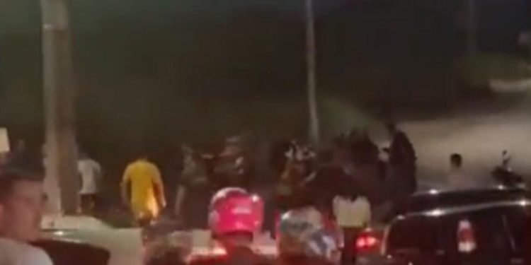 Um vídeo que circula pelas redes sociais mostra a população na rua agredindo os suspeitos. Um dos criminosos, seria menor.
