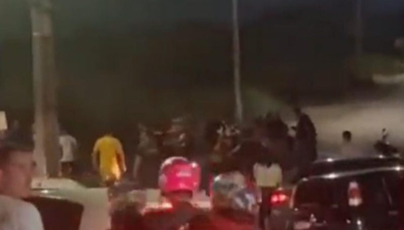 Um vídeo que circula pelas redes sociais mostra a população na rua agredindo os suspeitos. Um dos criminosos, seria menor.