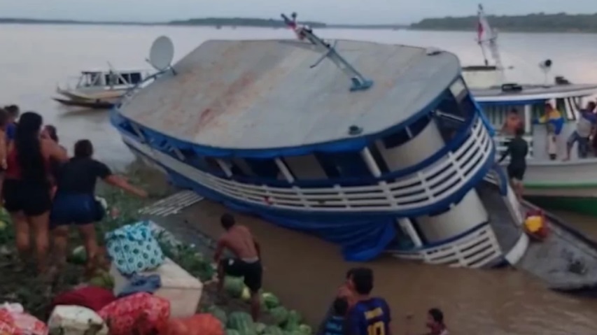 Um vídeo divulgado nas redes sociais mostra as pessoas pulando na água e tentando salvar as bagagens. Em poucos segundos, o barco começou a afundar e as pessoas ficam desesperadas com a cena.