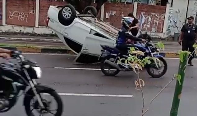 MANAUS – Um motorista foi rápido para evitar o atropelamento na manhã desta quarta-feira (3) na avenida Djalma Batista, mas acabou ficando de rodas por ar.