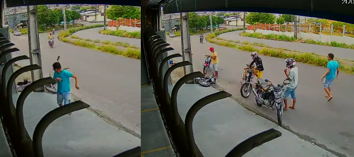 MANAUS (AM) – Um acidente grave foi gravado por câmeras de segurança na avenida Curaçao, no bairro Nova Cidade, Zona Norte de Manaus. Um motociclista perde o controle e cai na conhecida “curva da morte”, quase atingindo um pedestre.
