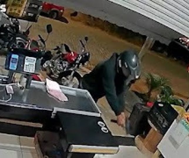 Câmeras de segurança registraram o momento em que Luizinho conversava com um cliente por volta das 20h. De repente, um homem desce da garupa de uma moto e vai na direção da vítima.