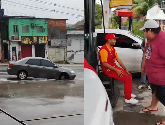 O carro ainda colidiu com a lateral de um carro que era abastecido, chegando a amassar. O trabalhador foi atingido nas pernas e se machucou.